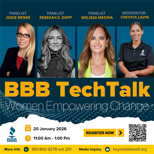 Join the Better Business Bureau for an impactful two-hour event dedicated to celebrating and advancing women in technology, entrepreneurship, and leadership.