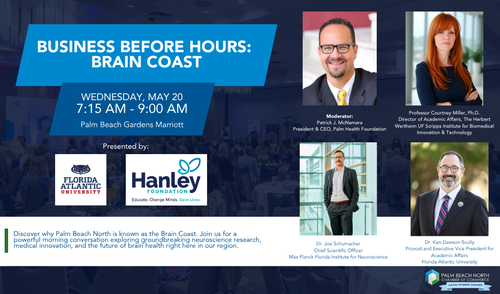 Join the Palm Beach North Chamber of Commerce for a special Business Before Hours featuring leaders from The Wertheim UF Scripps Institute, the FAU Stiles Nicholson Brain Institute, and the Max Planck Florida Institute for Neuroscience, to hear about the impact of more than 20 years of Palm Beach County neuroscience research.