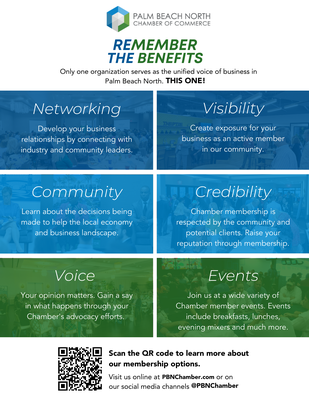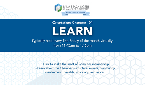 The Palm Beach North Chamber of Commerce invites all current and new members to a complimentary Orientation and Information session. This is the first step for NEW members to take in their onboarding process and current members can use this as a refresher! Attendees will receive information about the Chamber's structure, events, community involvement, member benefits and resources, advocacy and more. In addition, we will review the various ways members can engage with our Chamber to ensure they are capitalizing on their membership.